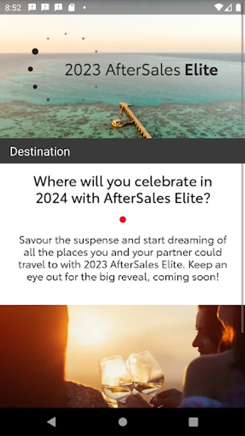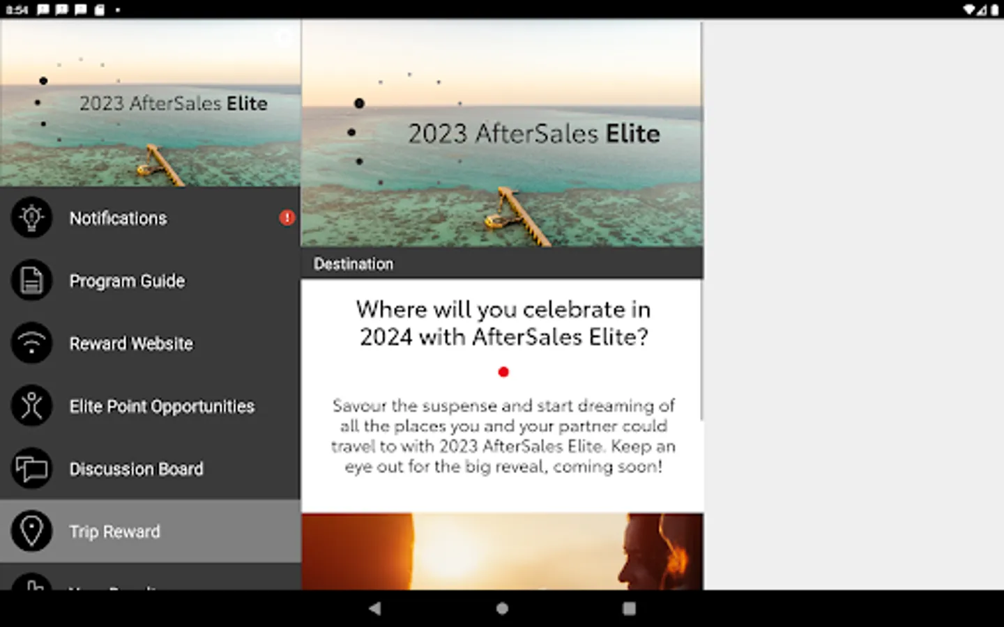 The AfterSales Elite Program App is the ultimate guide to the AfterSales Elite Program and Destination. View your results and leaderboard, Program Criteria and learn about the trendiest places to visit, best places to experience, and the most interesting things to do on your next AfterSales Elite trip. Privately share photos with other AfterSales Elite participants, and receive notifications on the latest! Your best, specially curated source of information to your next luxury experience with the AfterSales Elite and how to stay on track to get there.