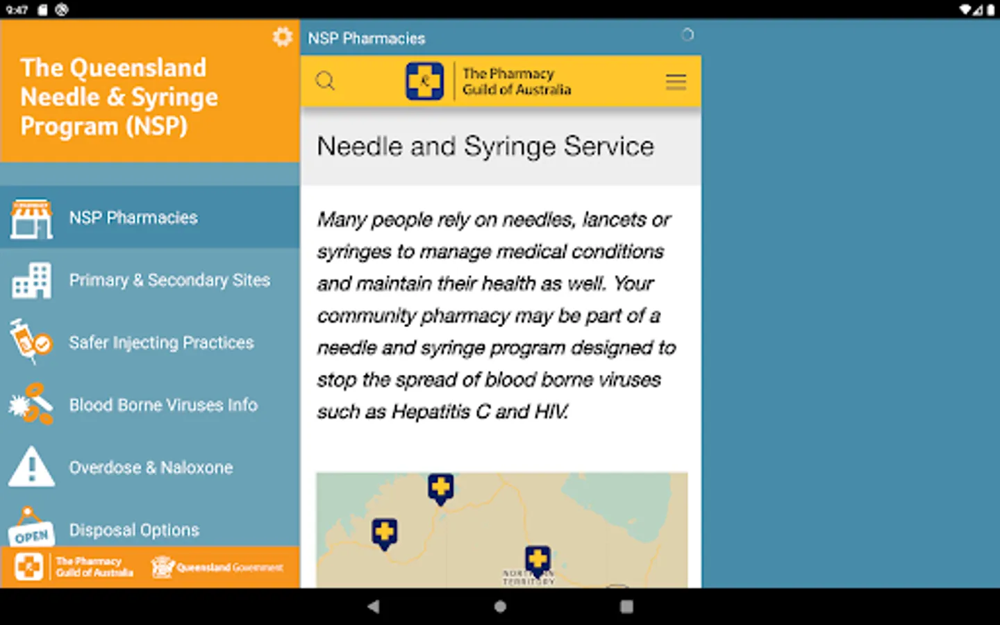 This app allows you to easily navigate sites around Queensland (and near you!) that let you dispose of sharps waste (e.g. used syringes and needles) safely and offer sharps kits. Find useful information about veincare, safe injecting practices and blood born viruses.