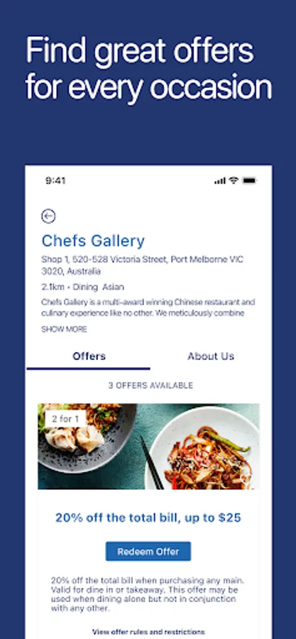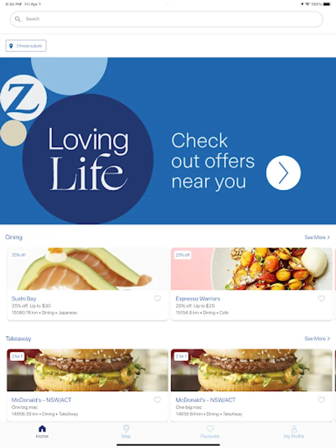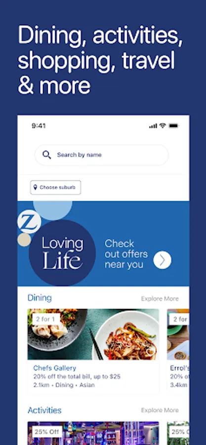 The Zurich Loving Life Membership by Entertainment™ Digital Membership belongs to the most popular local restaurant and activity guide which provides valuable 25% to 50% off and 2-for-1 offers from the finest restaurants, activities, shopping and accommodation throughout Australia. As a handy companion, this smartphone app will help to easily search and map the participating businesses.