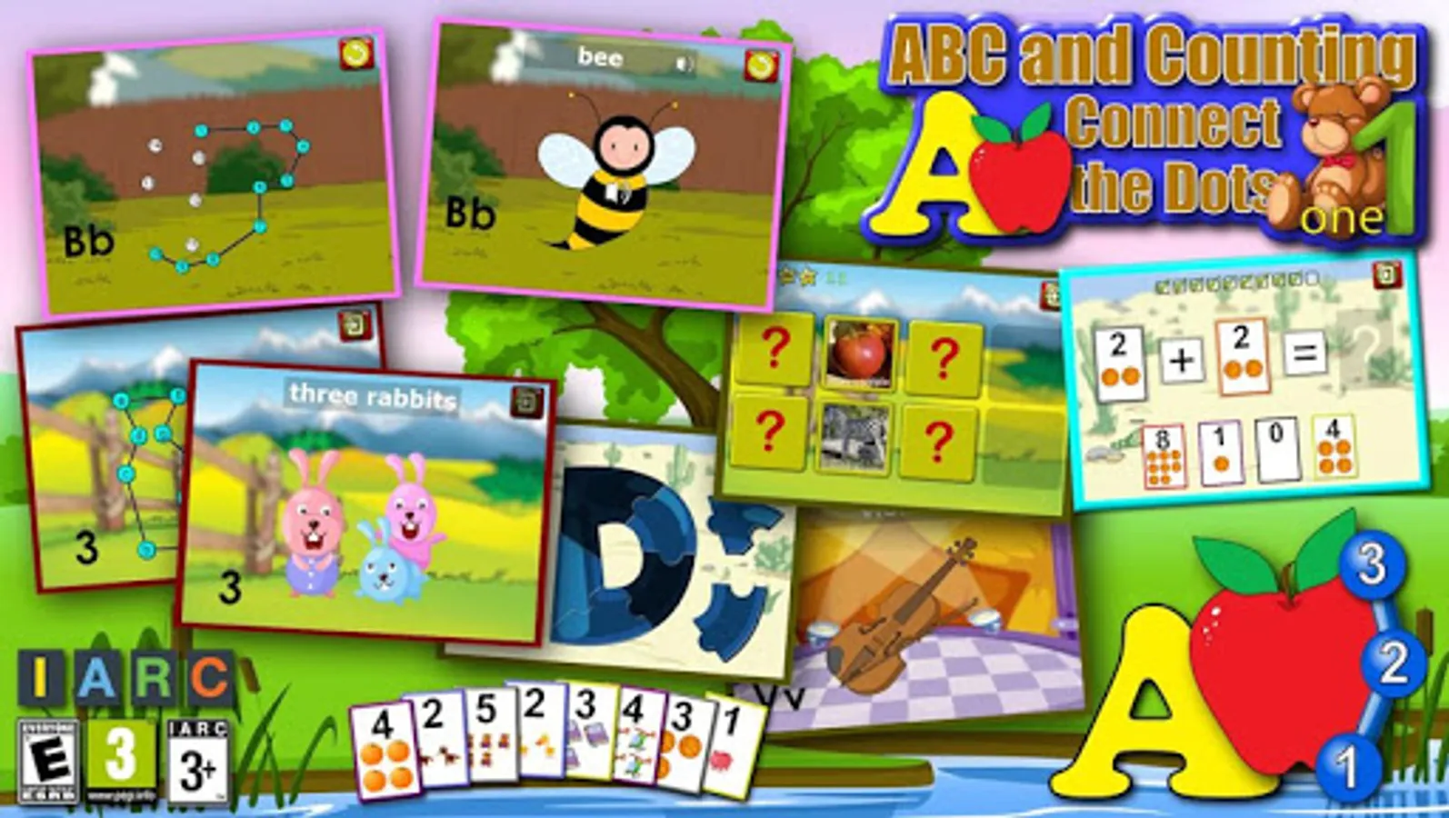 Complete connect the dot puzzles of cute cartoon pictures while learning the English alphabet, counting numbers and simple addition and subtraction maths from 1 to 20.
