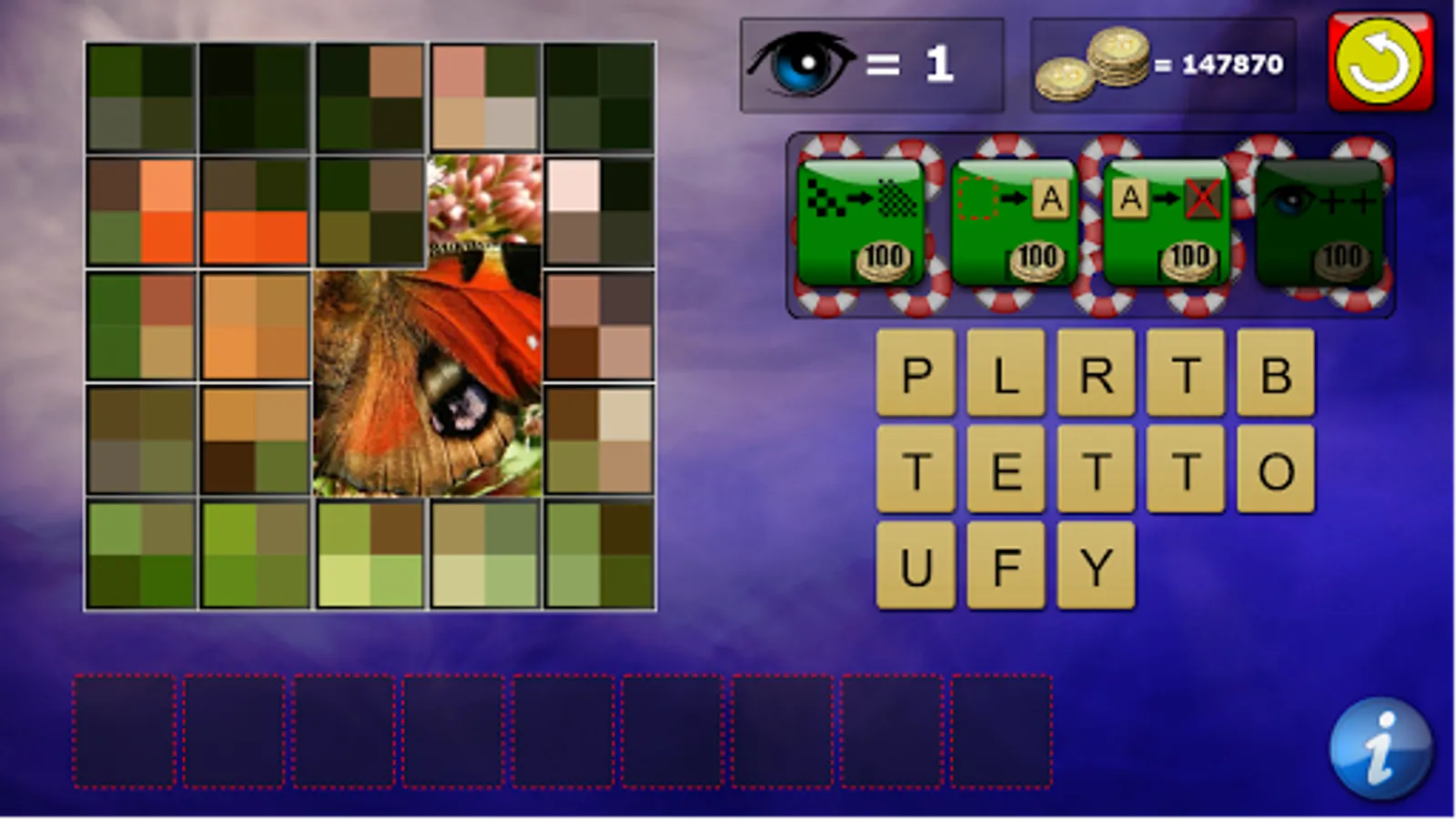 At the start, the photograph is pixelated and you need to guess the picture based on the part of the picture that's shown. You'll need to look carefully at the pixelated picture to decide which parts of the photograph to expose as you only have a limited number of tiles that can be revealed. The less moves you make to reveal the picture, the better! This quiz type game tests your guessing power and your vocabulary. You'll be forced to use your imagination every moment throughout the hundreds of images. Don't worry, no adult content so it's a perfect brain teaser for everyone! Brush up on your lingo, because the pictures will not always be the hard part. Wordsmiths, come and show your crossover skills!