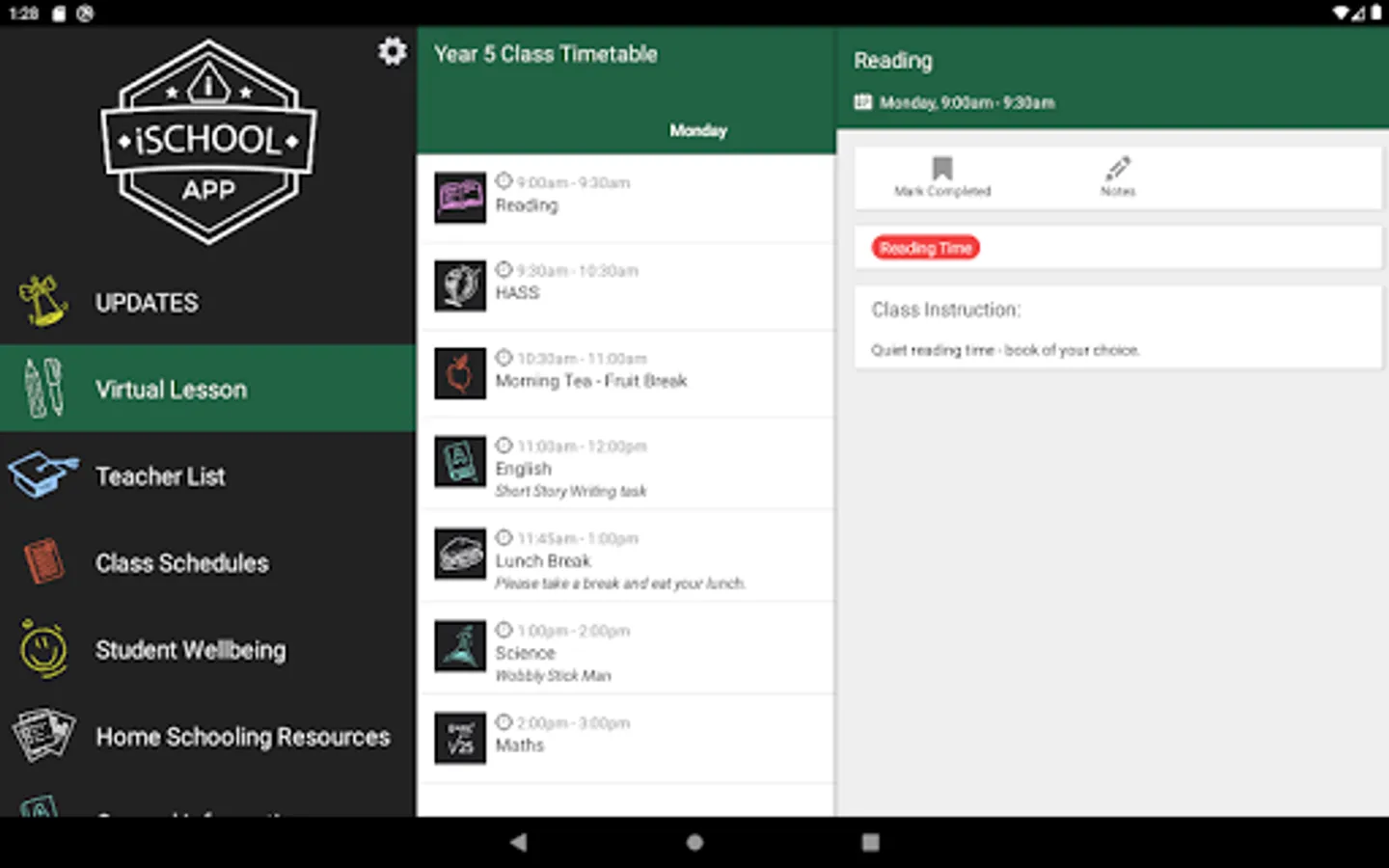 Ability to track, monitor and manage attendance, mark lessons completed and submit work to teacher.
