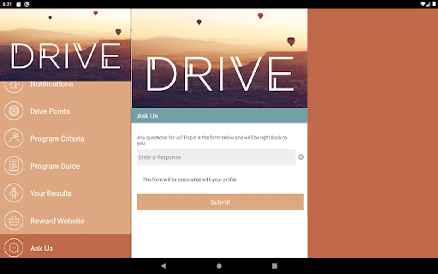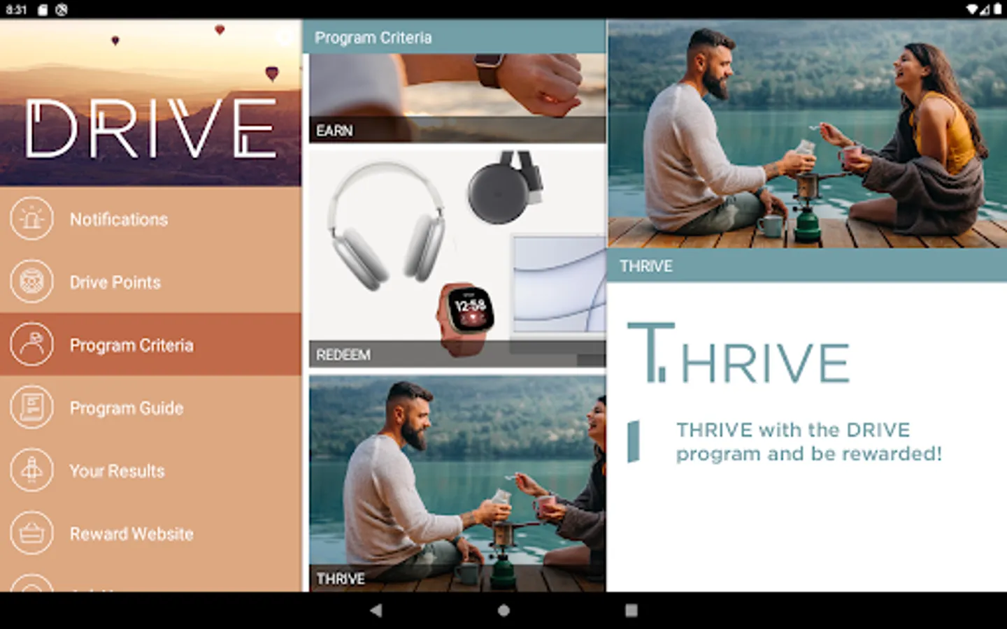 The DRIVE Insurance Program App is the ultimate guide to the DRIVE Insurance Rewards Program. View the Program Criteria, Terms and Conditions, your Results, Reward Tier, and support tools to help drive your performance.