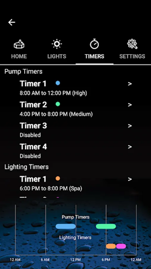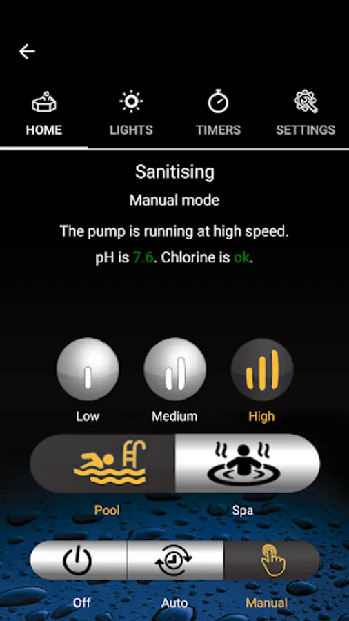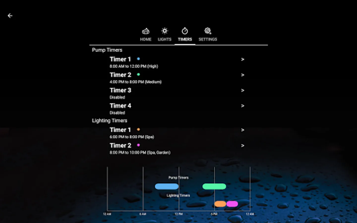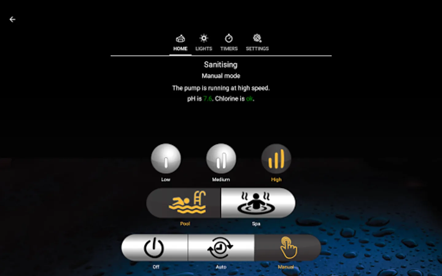 - View and adjust the pump and lighting timers, with full control of start & stop time and speed.