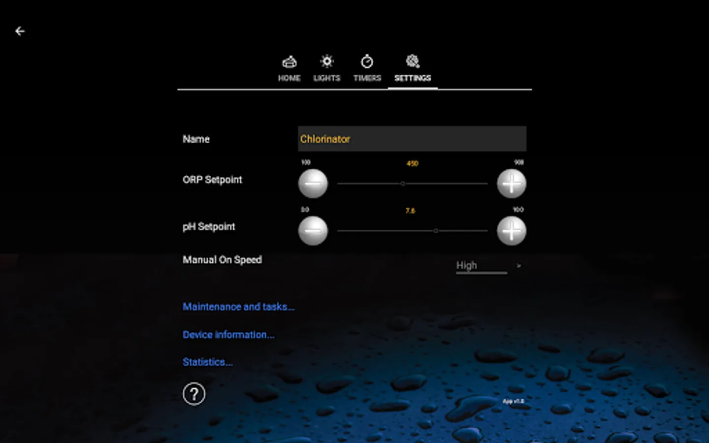 This app requires a compatible AstralPool chlorinator. Contact your local dealer or AstralPool representative if you're unsure whether your chlorinator is compatible. Not all features available in all chlorinator models. Some features require additional equipment, such as chemical sensors or lighting controllers.