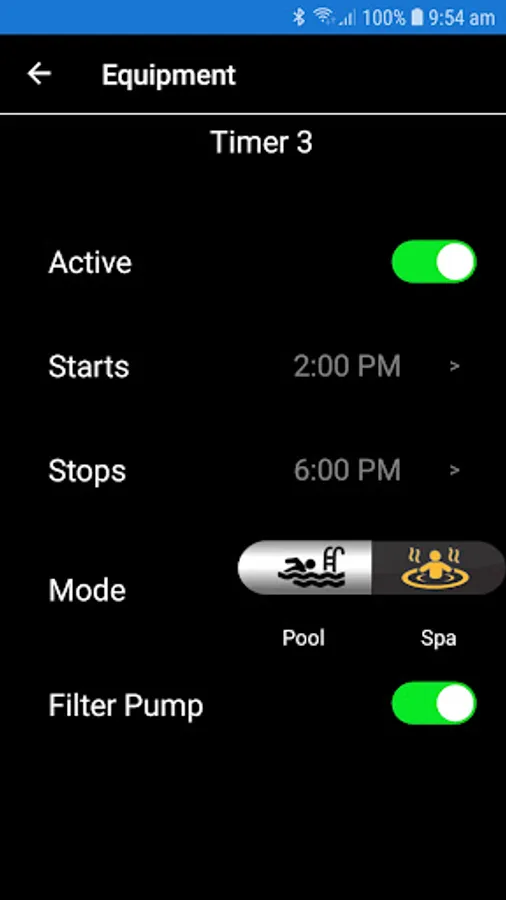 - View and adjust the pump and lighting timers, with full control of start & stop time and speed.