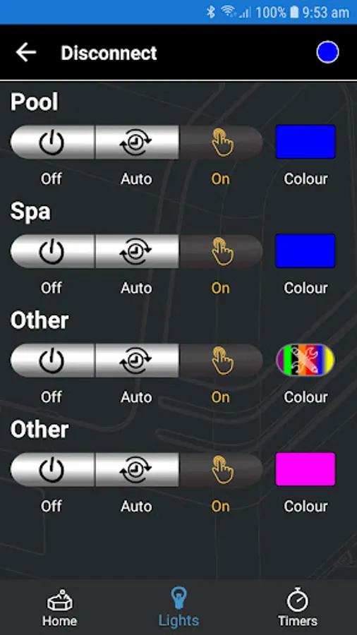 - Turn on and off your lights, and change their colour.