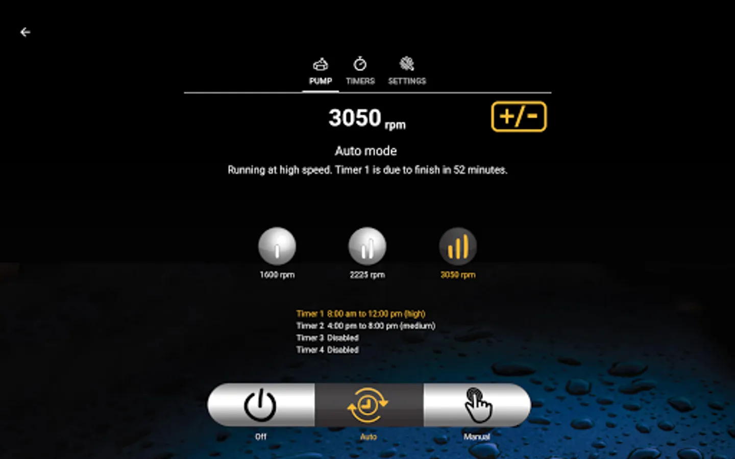 - View and adjust the pump timers, with full control of start & stop time and speed.