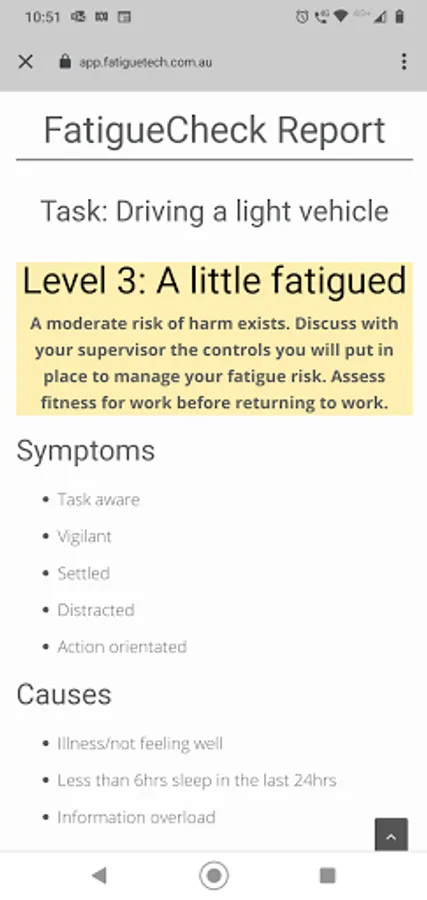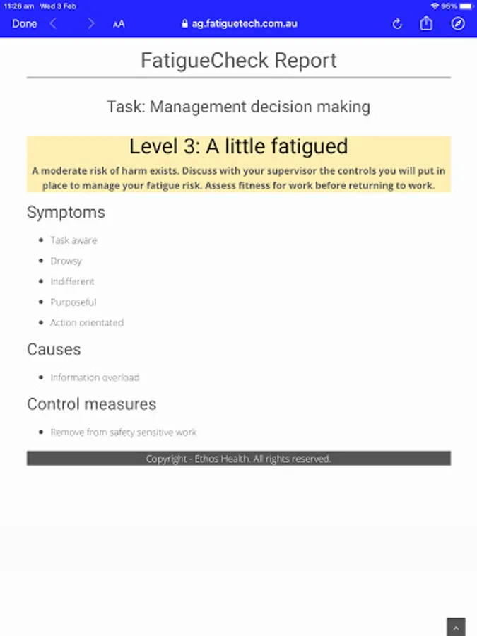 Assesses eight fitness for work factors that can impact an individuals well-being and fatigue.