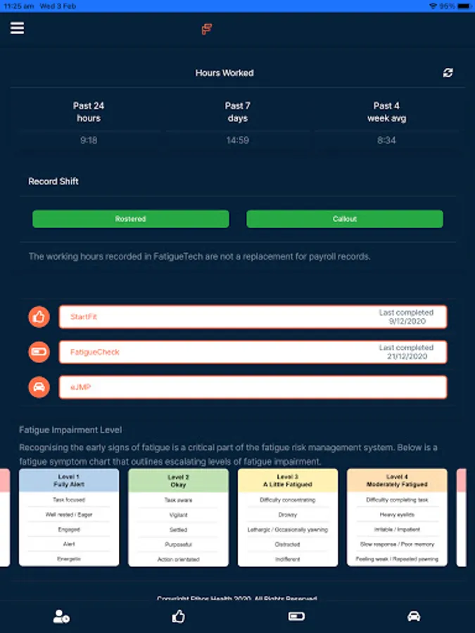 FatigueTech is an application that enables workplaces to automate their Fatigue Risk Management System to minimise the risk of fatigue-related incidents or injuries.