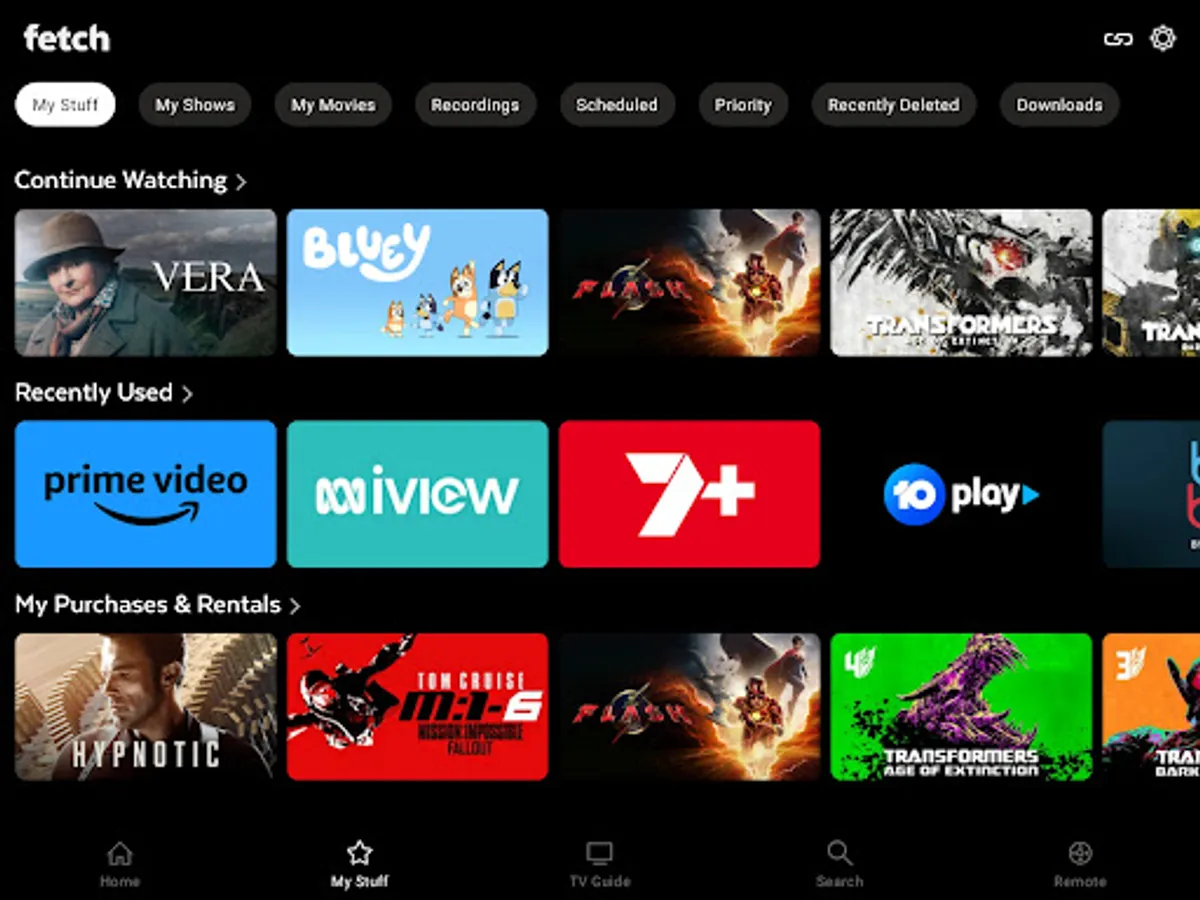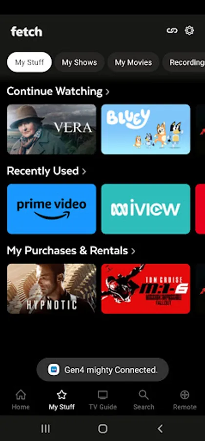 Fetch customers can connect your Android device to your Fetch set-top box, and watch selected subscription channels^ and Movie Box^ movies at home or when you are out and about. You can schedule and manage your recordings from anywhere, plus watch movie trailers and rent or buy movies ready to watch on your TV at home. You can also download selected movie and TV shows to your Android device and watch them offline.