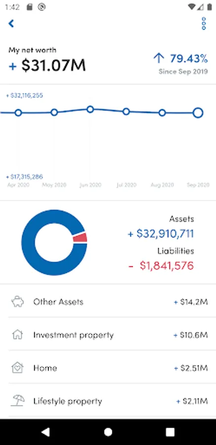 Add all your bank accounts, credit cards, loans, savings, details of a rental property into the app for an overall view of your assets and liabilities.
