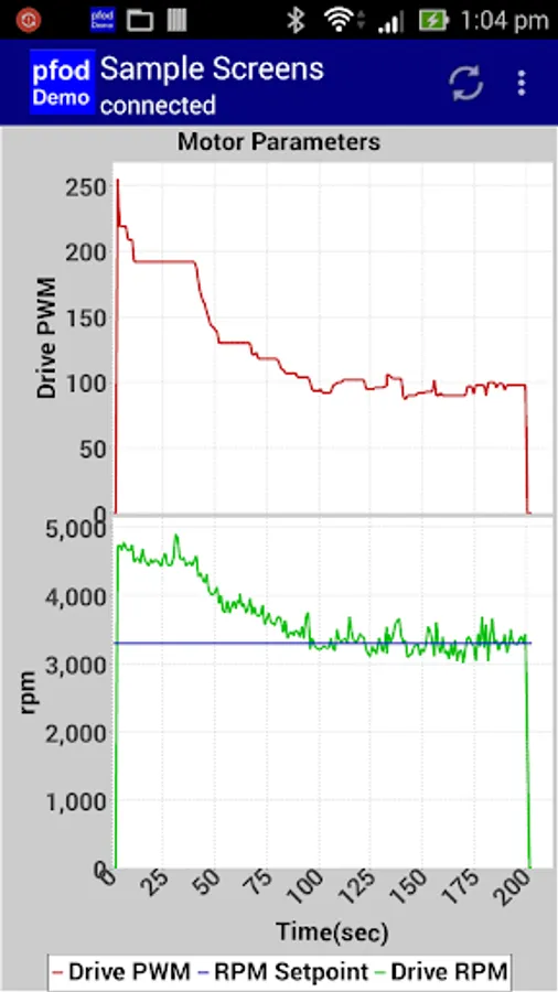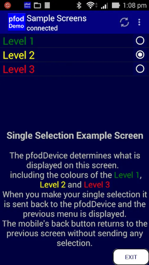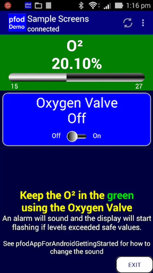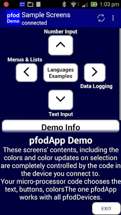 Try out this free demo version on your mobile to test its compatibility and to see how example screens are displayed before downloading pfodApp to do real work