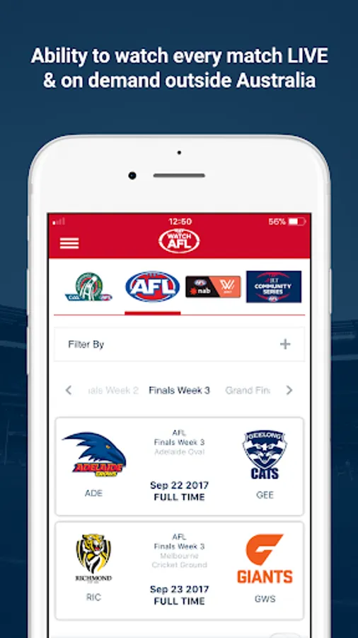 Watch AFL is the official way to watch every AFL match LIVE & on demand outside Australia.