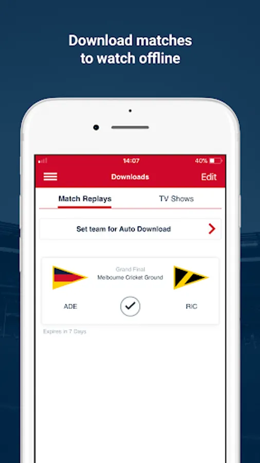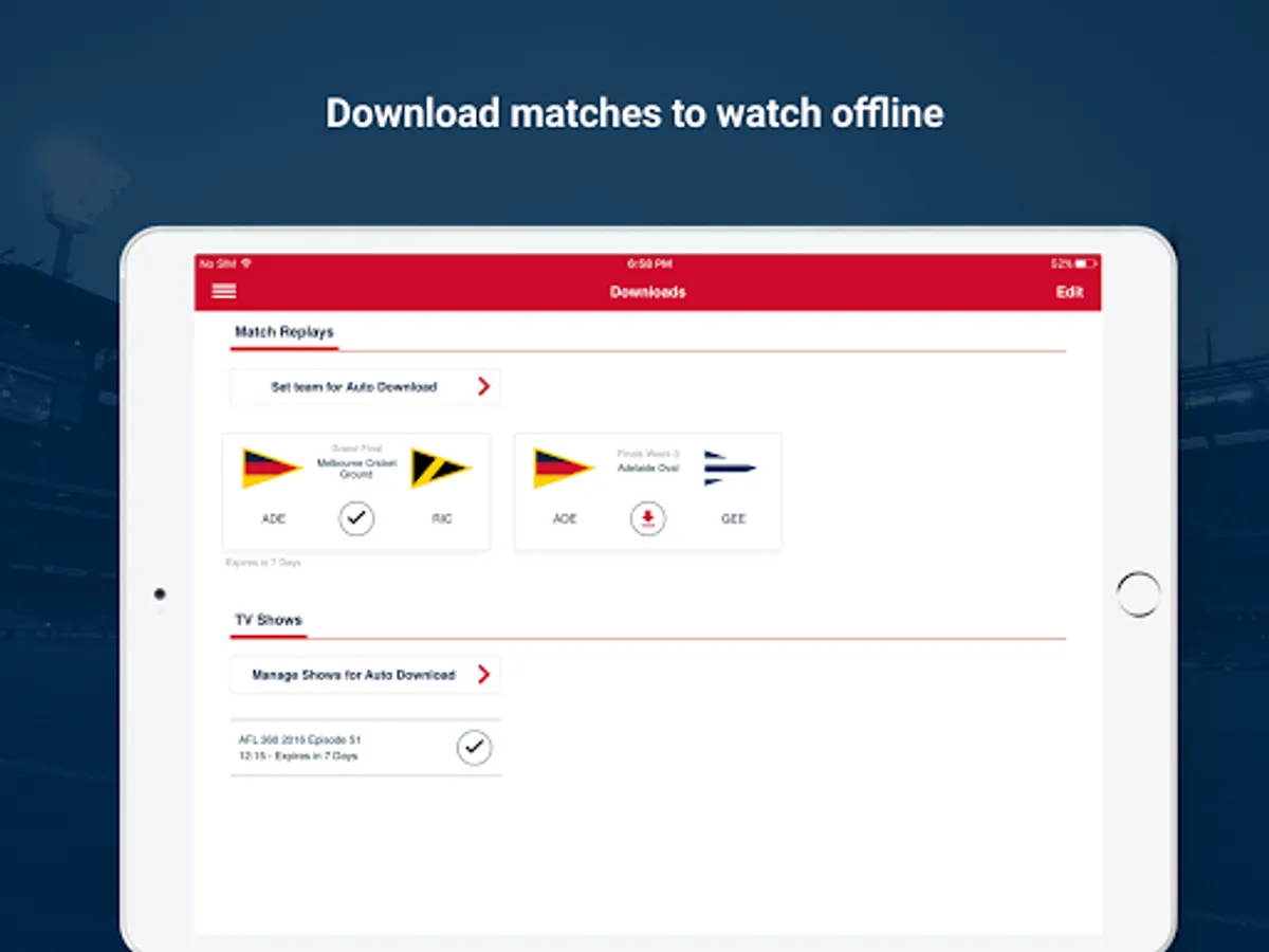 • Download matches for offline viewing