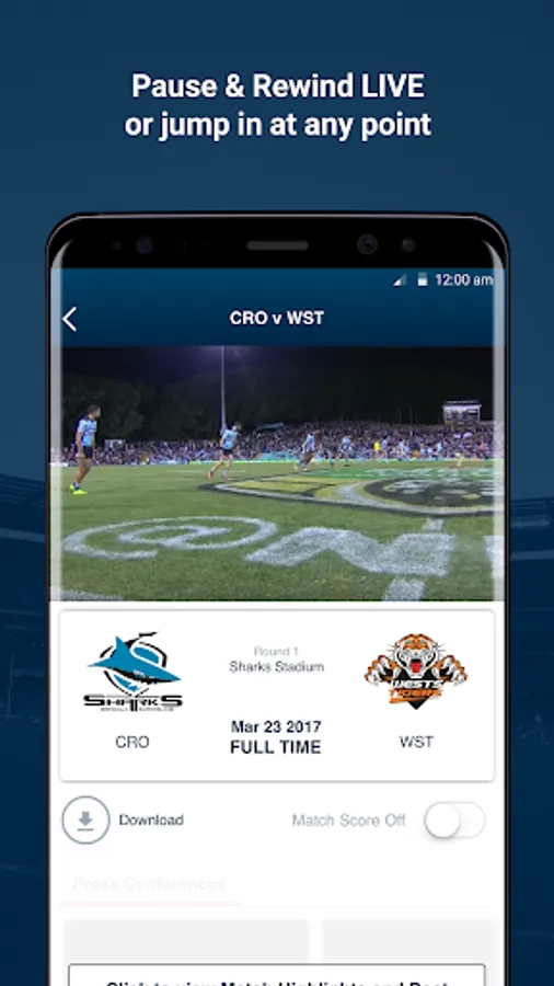 Pause and rewind LIVE matches or choose where to start watching