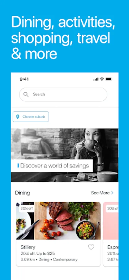 Discover 2-for-1 and up to 20% off deals across dining, takeaway, activities, shopping, gift cards, travel and more. Save money, find a great restaurant, book a hotel, shop online, or go to the cinema with friends.