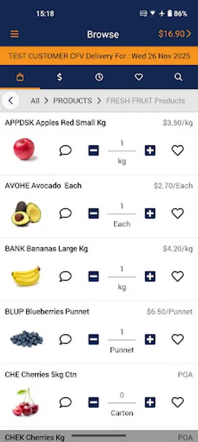 The Central Fruit & Vegetable Wholesalers app also offers the following features: