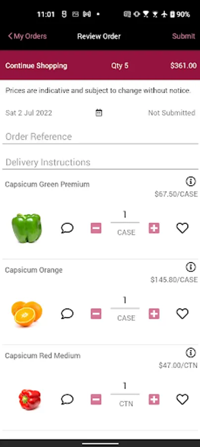 Designed for quick and easy ordering on any mobile device, you can browse through the currently available products with the latest prices. You can also view the latest specials and create a list of favourites or just search for products by name.