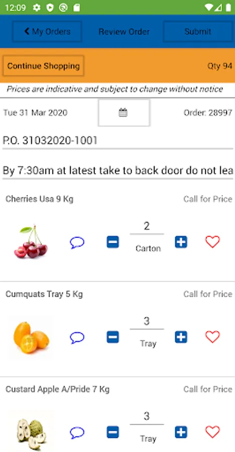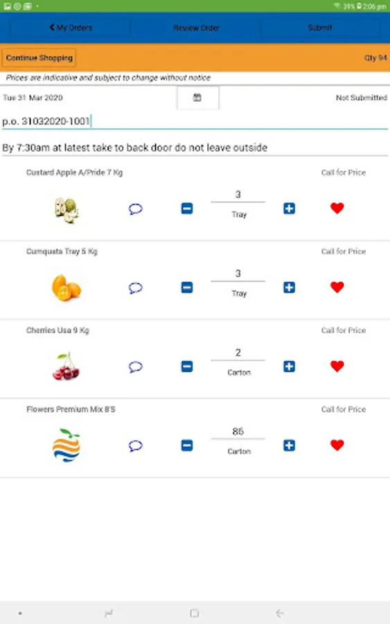 Place your wholesale fresh produce orders with the TFN Orders app.