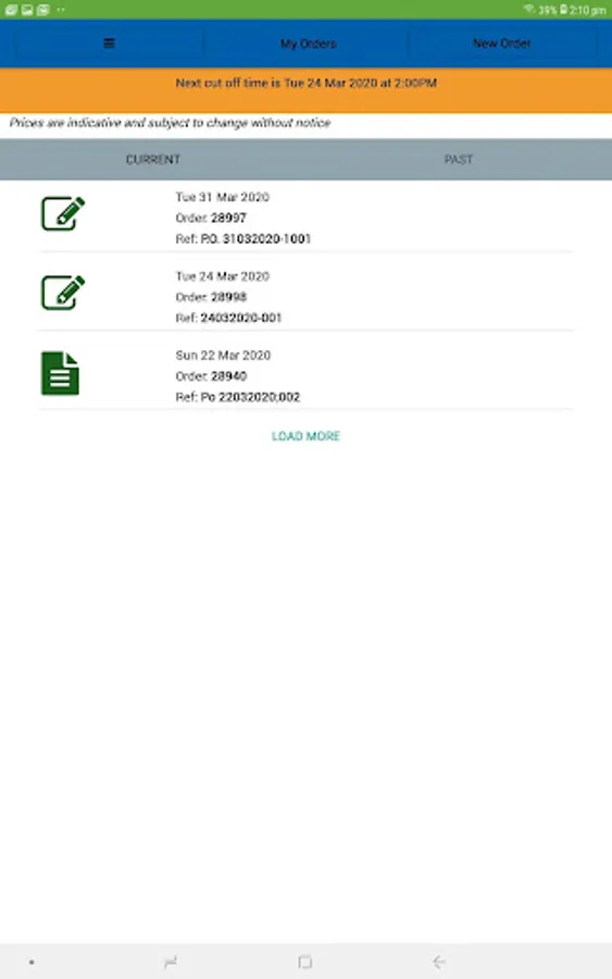 Designed for quick and easy ordering on any mobile device, you can browse through the currently available products with the latest prices. You can also view the latest specials and create a list of favourites or just search for products by name.