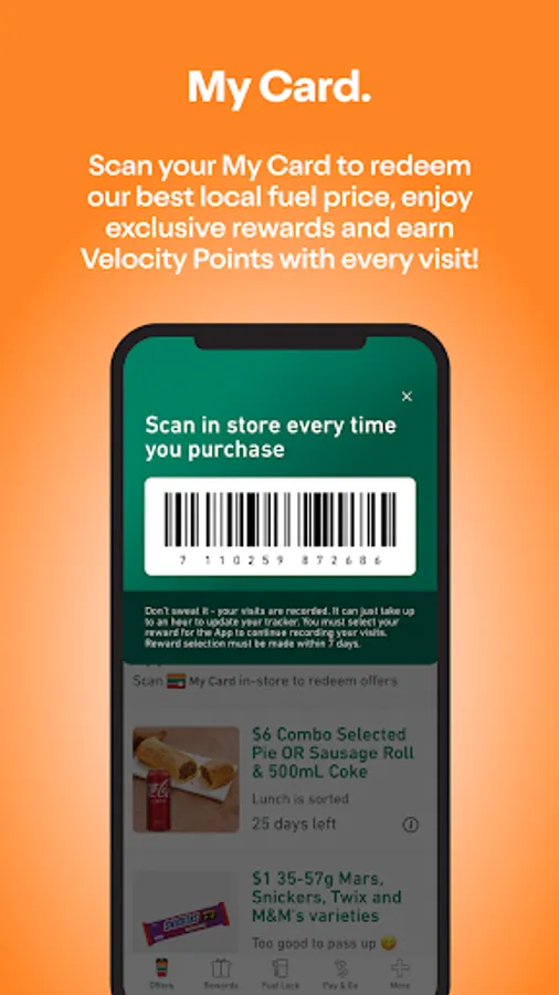 Earn Velocity Points the easy way – scan your Velocity linked My Card when you make a fuel or eligible in-store purchase. See 7eleven.com.au/velocity for full T&Cs.