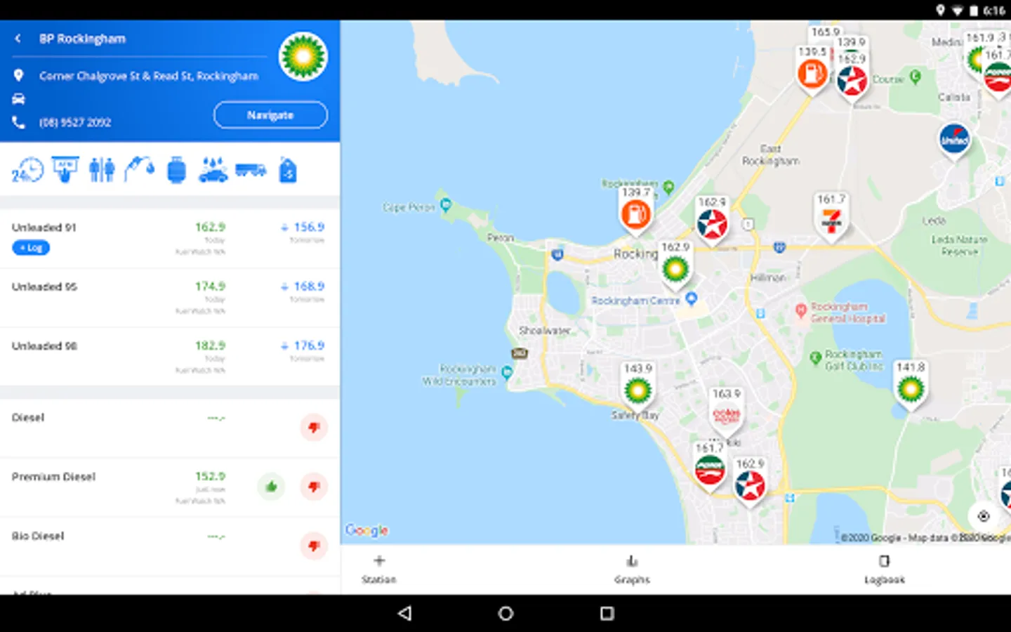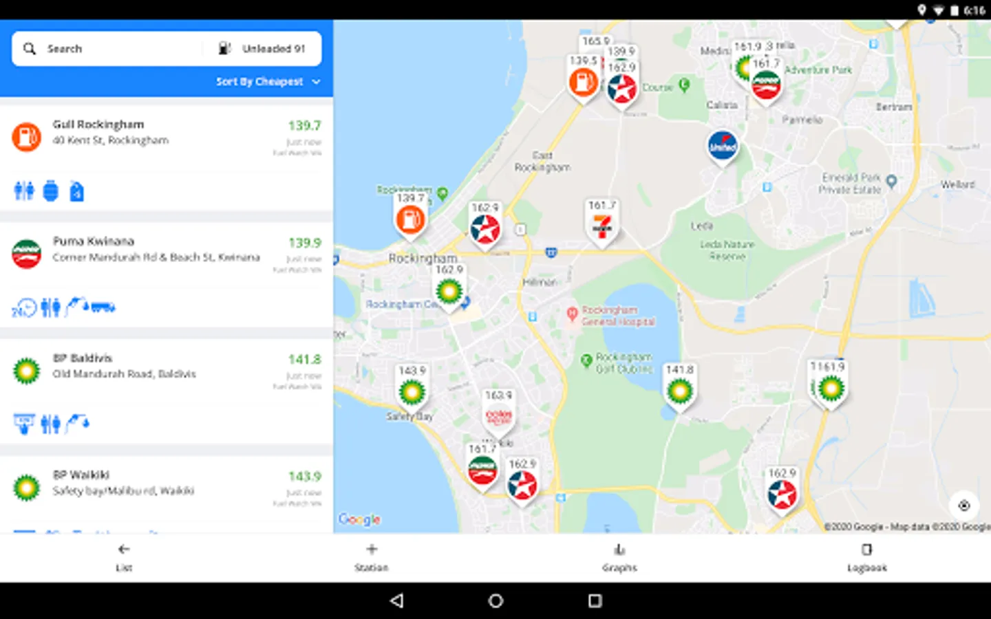 The slide-in site list makes it easy to find the cheapest petrol station near-by in seconds.