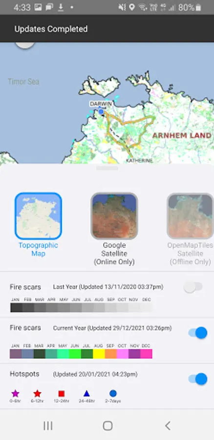 This is our initial release of the app that brings the most used fire information resource for land managers in Australia to your phone, allowing you to keep a constant eye on bushfire threats. As a pastoralist, grazier, indigenous ranger, conservation scientist or member of the public, you can view maps of recent fire activity (hotspots) and burnt areas (fire scars) provided by the North Australia and Rangelands Fire Information (NAFI) service.