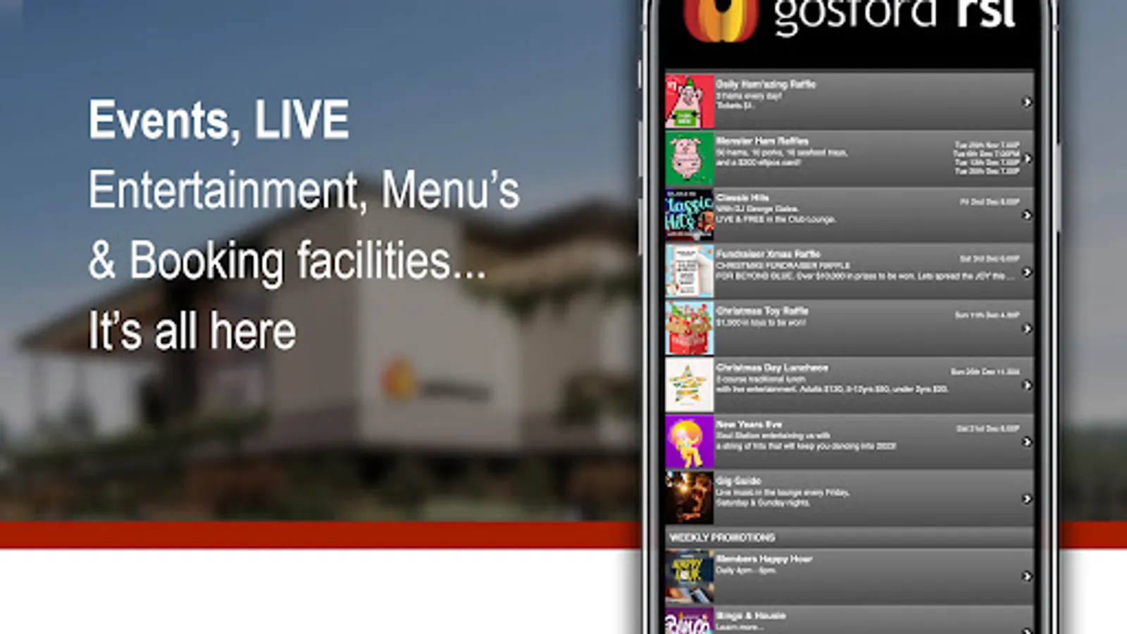 The Gosford RSL Club App keeps all its Members and Guests up-to-date on: day to day activities, featured events, live entertainment, weekly performing artists, dining menus, daily specials and it notifies you on special events. It provides you with all the club's info at your finger tips.