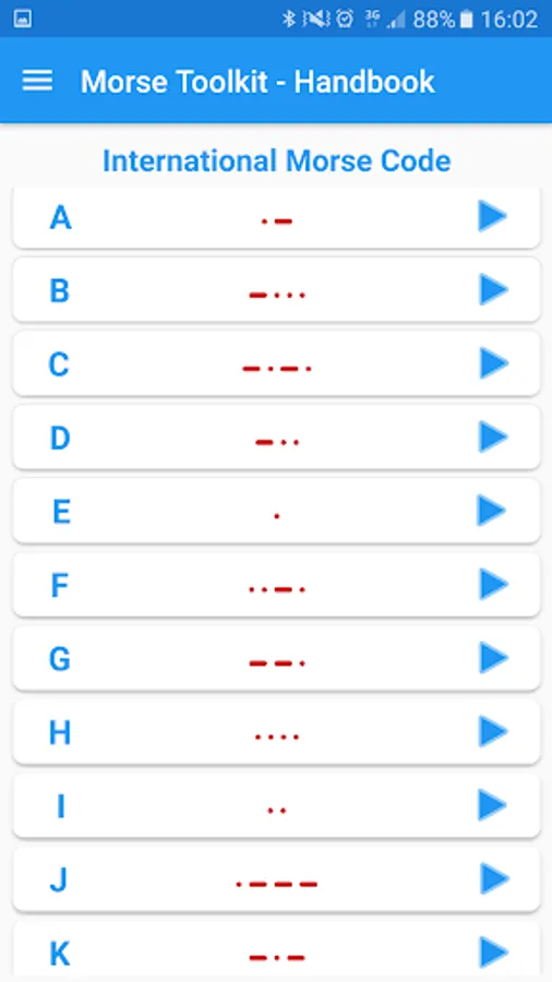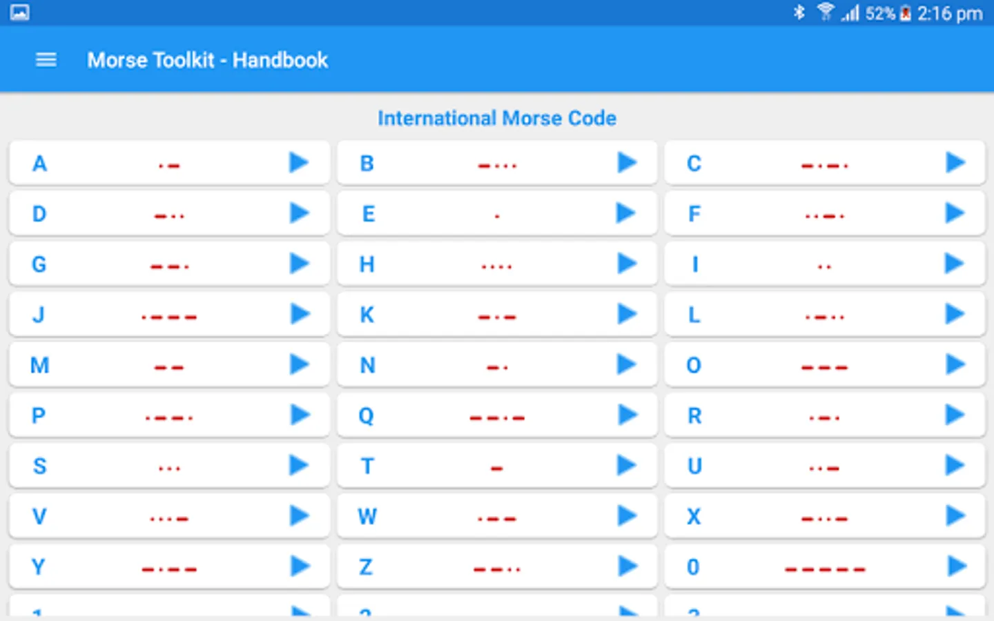 Handbook provide you quick reference to the internal morse code list. you can also listen to the audio of each symbol.