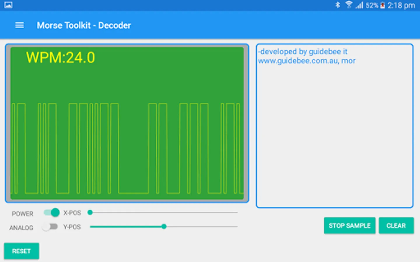 Similar to Transmit , Receive morse play audio for single letter, number and word, also it provides an morse encoder (Convert text to morse audio).
