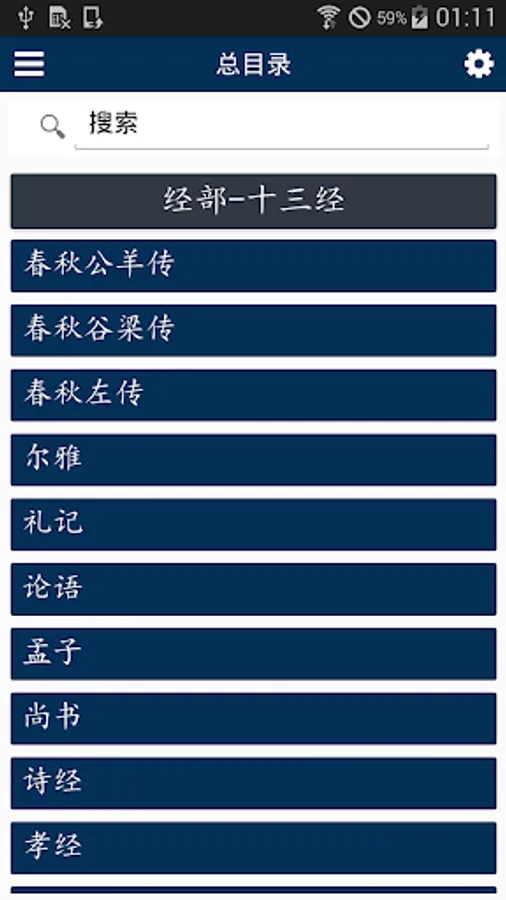 古典文学包含了经部-十三经,十三经注疏,史部-正史,地理,别杂史等,子部-诸子,道家,术数,兵家,兵家,科技,书法绘画,传习录-艺术,儒家,杂家,蒙学,释家,集部-总集,别集,戏曲,文论,小说-明清通俗小说,文言小说约500多部著作。此外还包括7000多篇短文,15000多则笑话。支持搜索,书签。明清小说列表: