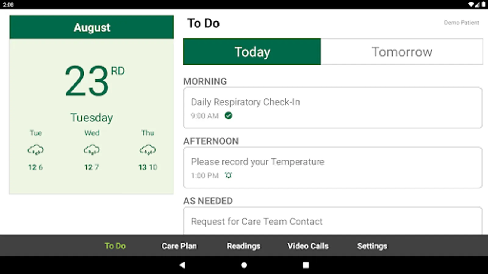 - Receive secure video calls from your service provider to manage and monitor care remotely.