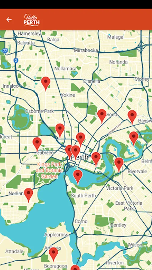 To complement the app, visit your free copy of the Hello Perth Visitor Guide Book and print maps from Perth Airport, visitor centers, and over 200 destinations in Perth.