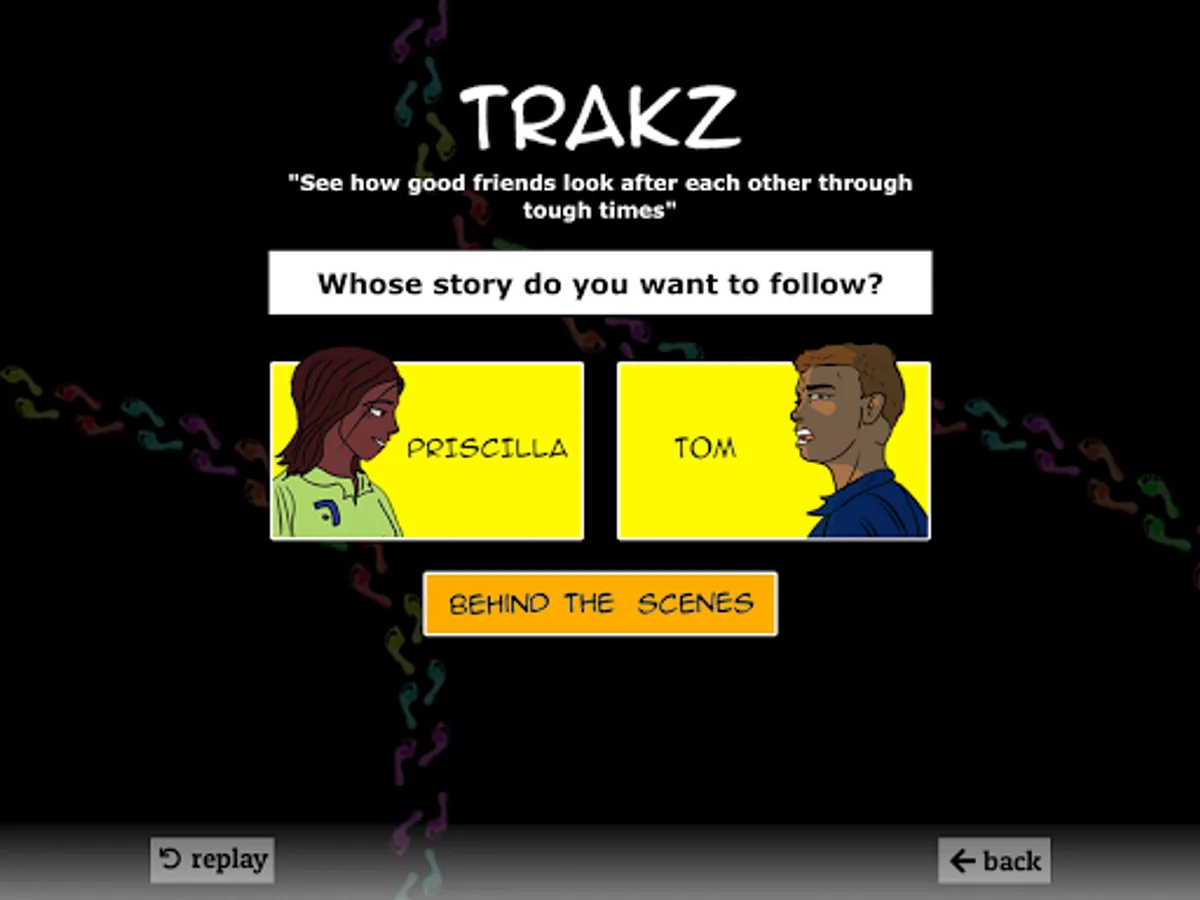 Welcome to Trakz. See how good friends look after each other through tough times. Watch Tom and Priscilla’s stories and choose the Trakz to see what happens to them. Produced by Menzies School of Health Research.