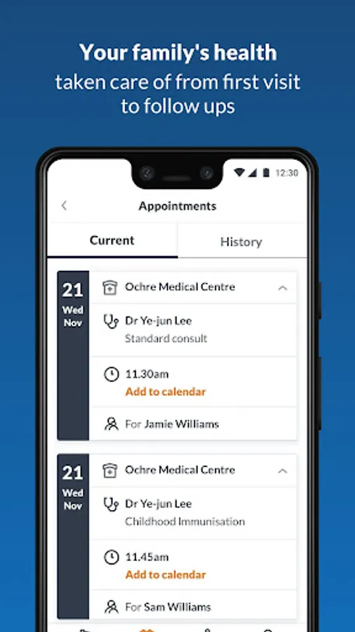 - Quick bookings on behalf of family members and dependants