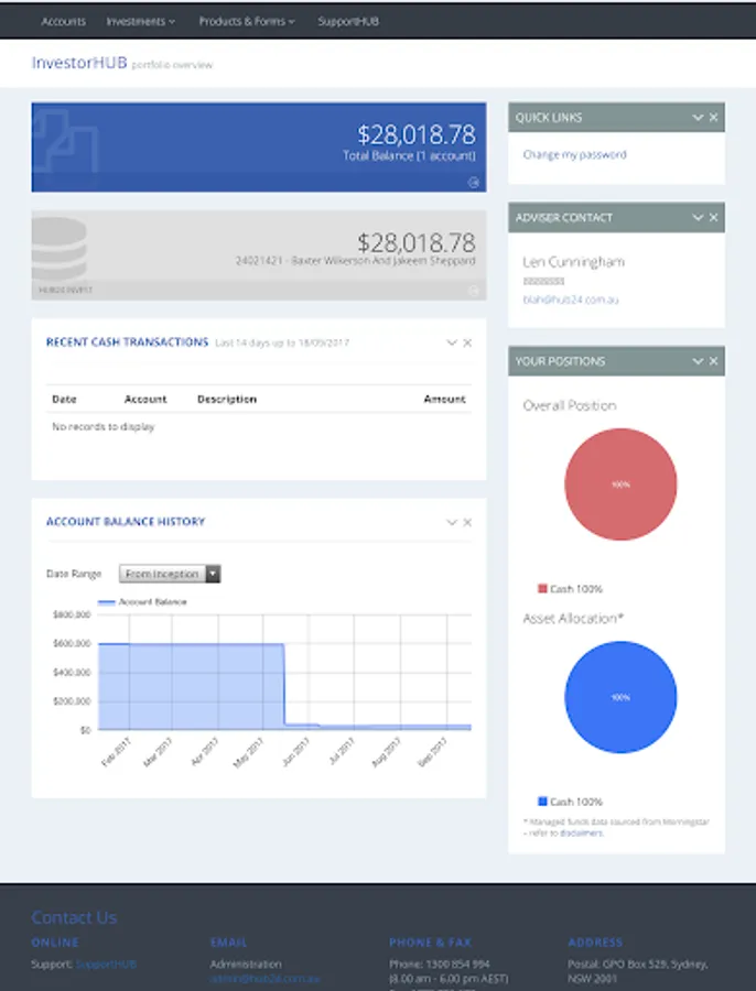 • Check FUM, fee inflows, managed portfolio performance, important notifications, up to date asset values, client contact details and much more