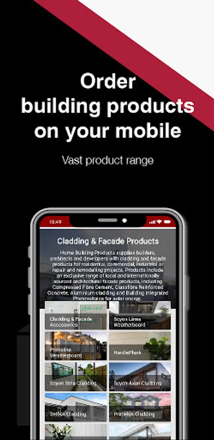 • Order building products on your mobile