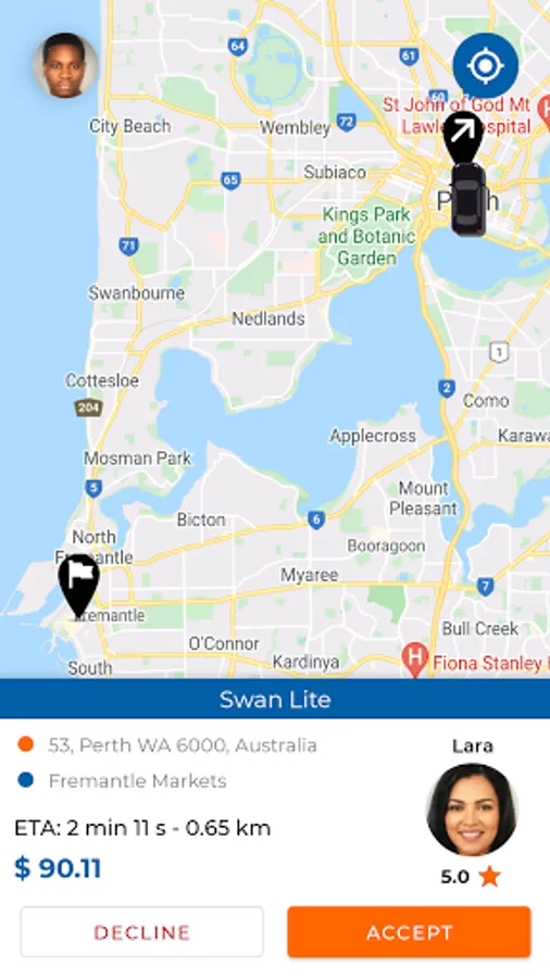 The My Swan driver app enables My Swan drivers to receive and process passenger bookings and related administrative functions.