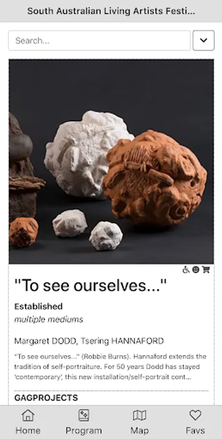 The SALA Festival app provides information about SALA (South Australian Living Artists) Festival visual art exhibitions and events taking place in Adelaide in August 2017. It contains a full listing of all SALA Festival exhibitions and events including artist, exhibition name, venue, opening times, dates, location, description, type and images.