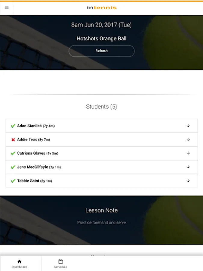 The inTennis mobile app lets you stay close to your business and your clients, wherever you are. Manage your classes, lesson schedules, look up client information, and keep track of student attendances.