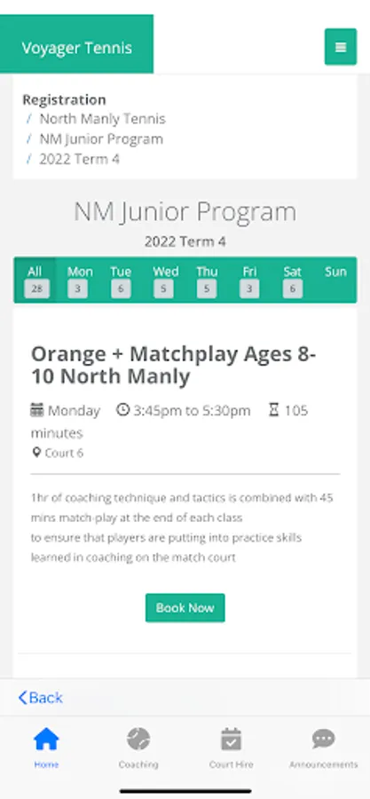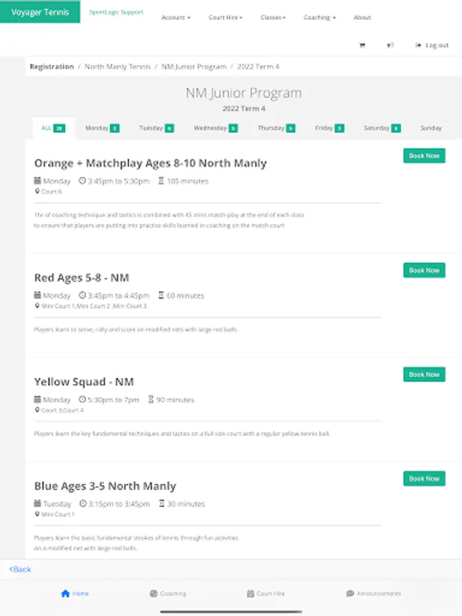 Voyager has classes for players of all abilities, with tailored programs delivered by experienced professional coaches.