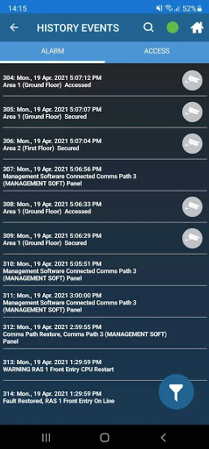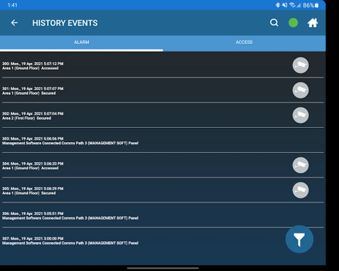 View panel history and outstanding alarms. The TecomPlus mobile app will directly display access and alarm events in the panel history buffer in a friendly, easy to read format. Notifications also allow users to quickly view any outstanding alarms or events, with a simple tap bringing you to right where you need to be to take action, all with the touch of a button.