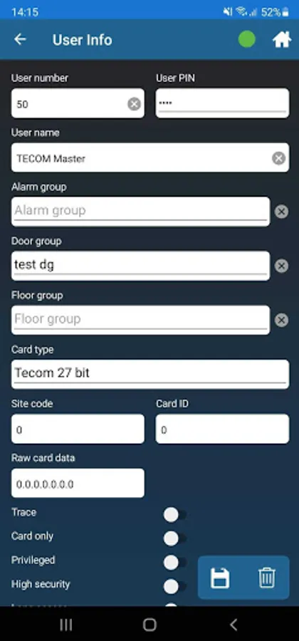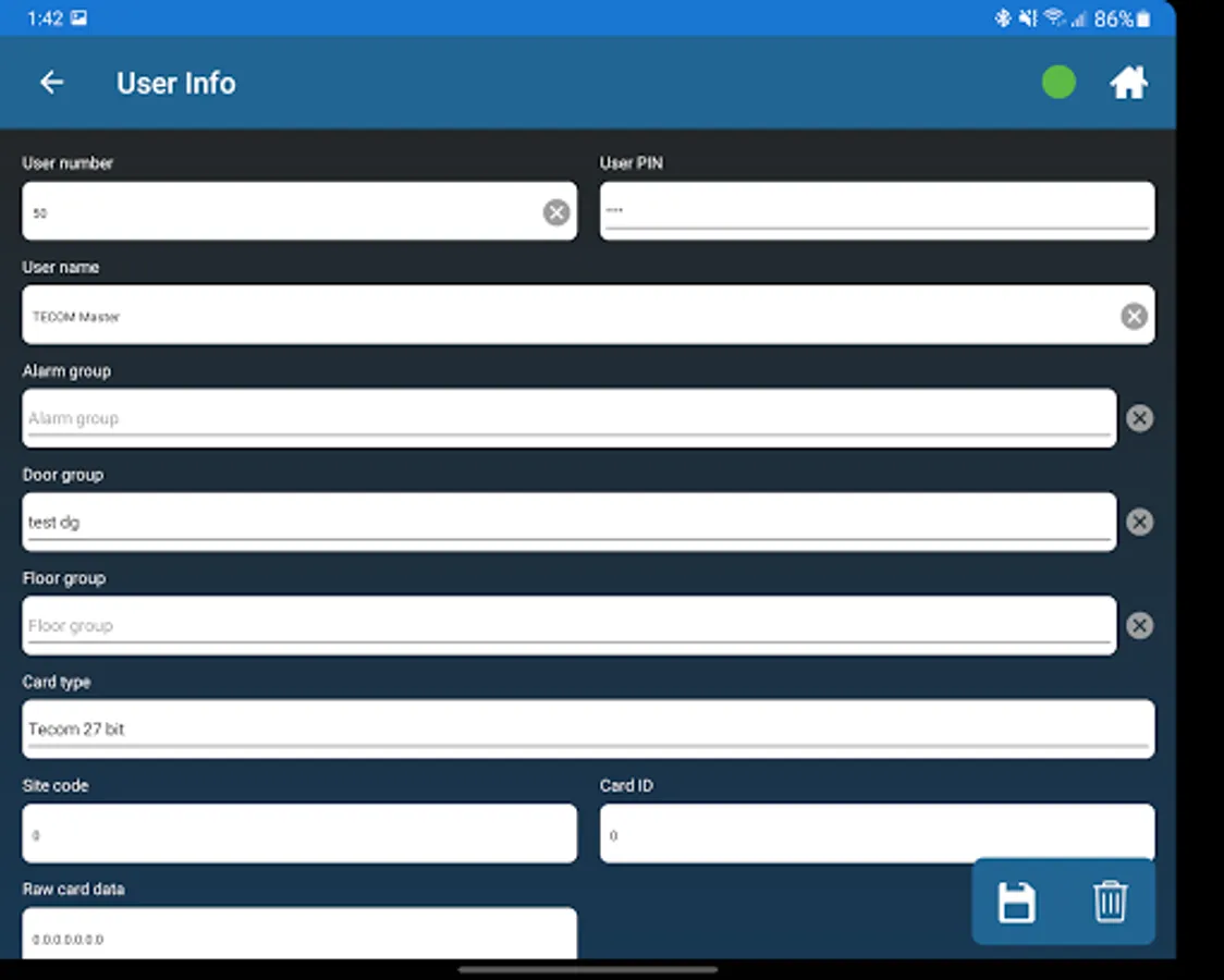 The TecomPlus mobile app allows you to control who can access the security system. You can program user PIN codes or access control cards, with added security of PIN authentication prior to viewing or modifying a panel. The TecomPlus mobile app also allows you to edit all user details, including access groups and expiry dates, as well as providing you with the ability to quickly and easily change your own PIN code without requiring full users access.