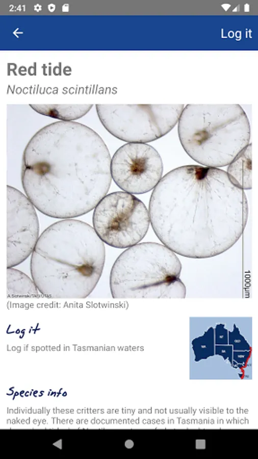 Inspiring Australia and NSW Government Environmental Education Trust Fund provided funding (with support from IMAS and the University of Newcastle) for the development and production of a beautiful and easy-to-use tool allowing photo sightings of unusual marine sightings for any particular area to be submitted to Redmap. The app also contains information on Redmap species that are highlighted in each coastal region as those that are important to look out for. The species information provided includes pictures and basic biology as well as distribution maps.