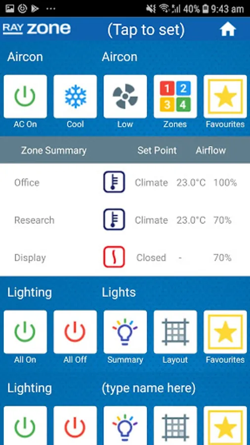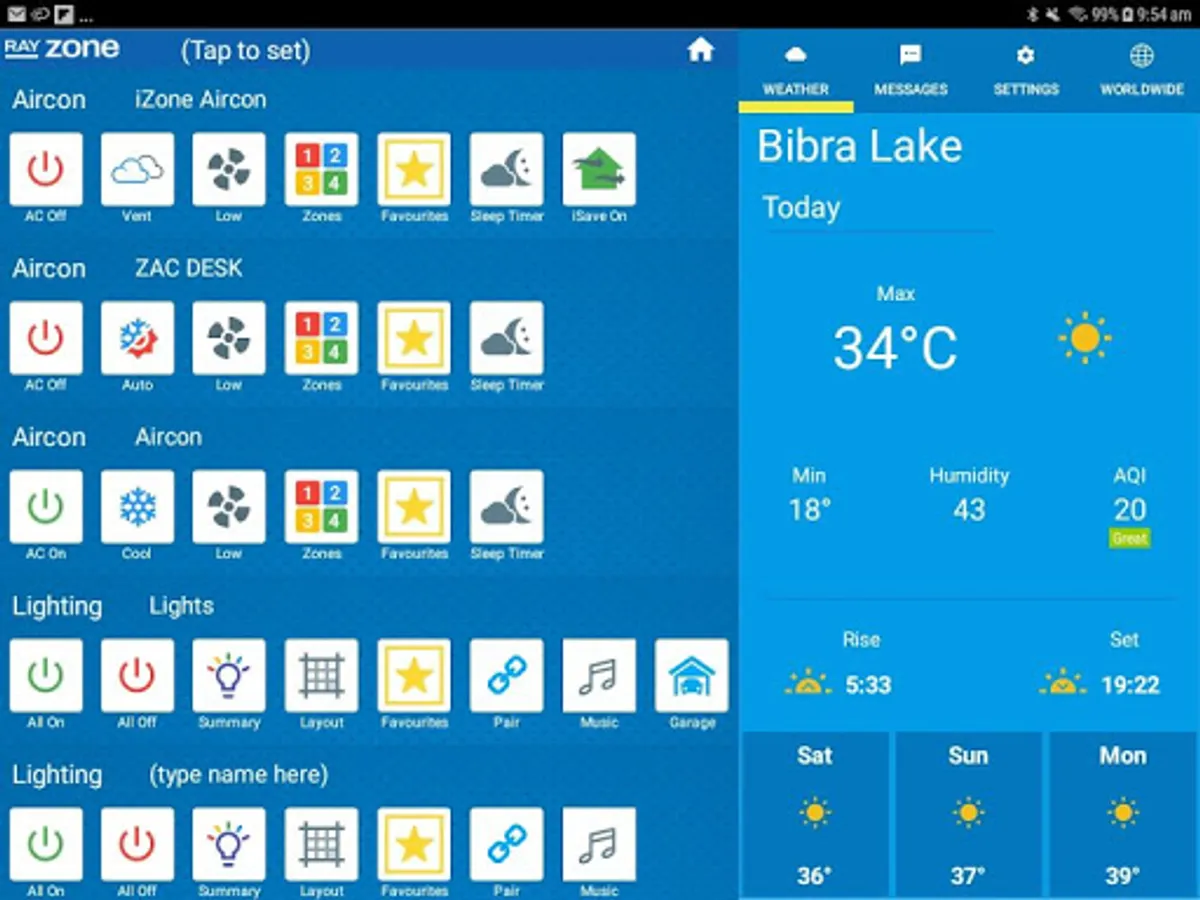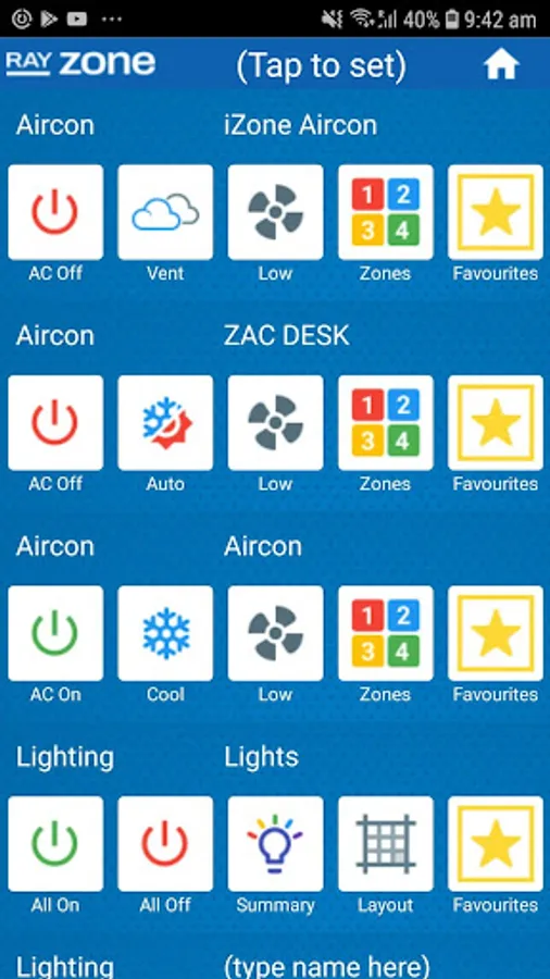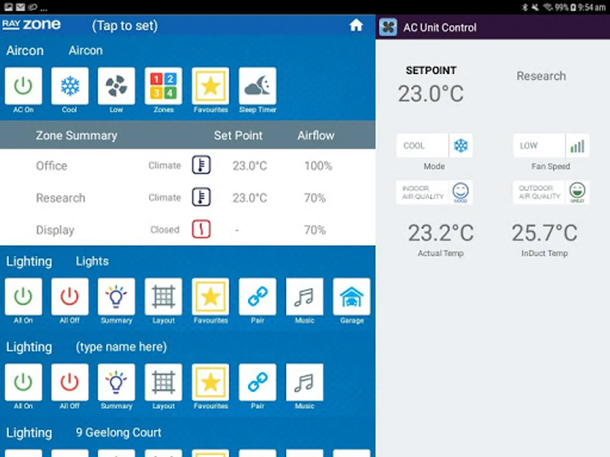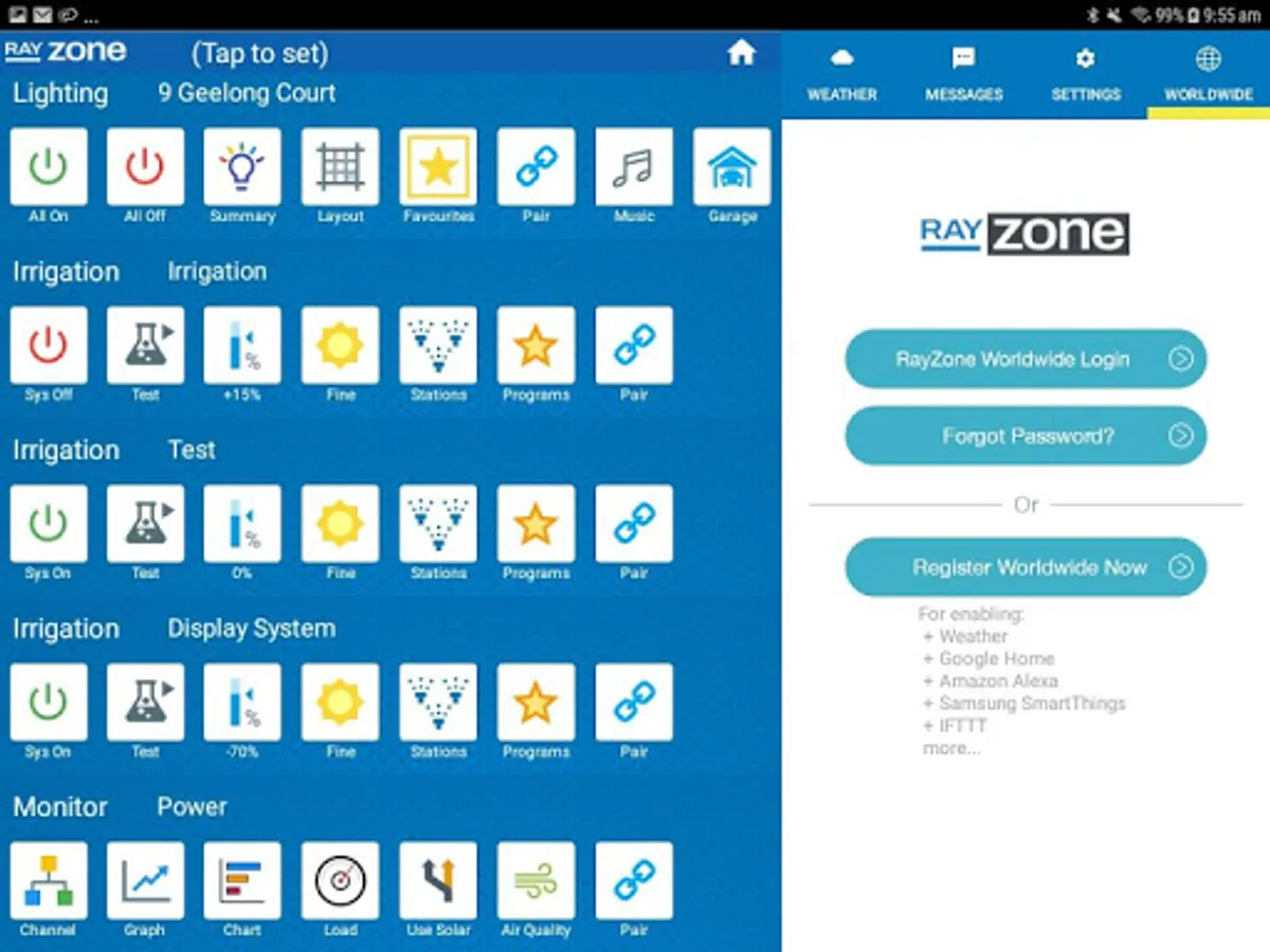 The RayZone App is the perfect way to control your Smart Home on your android phone or tablet. You can manage your whole system from this app including your Aircon, lighting, irrigation, garage door, blinds and 240 Volt appliances. RayZone is an inexpensive plug & play home automation system that gives you total control of the following services: