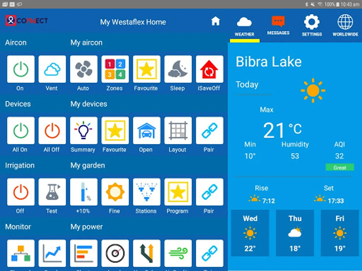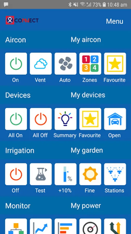 With a simple touch of your smart phone, tablet or via the CONNECT you can control your air conditioning system, your lights, your power, your irrigation system, your gas ducted heating system, your garage doors and more.