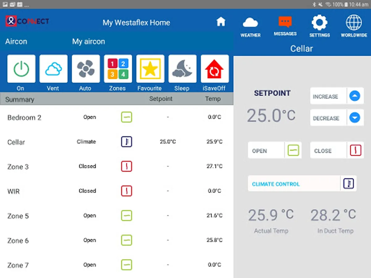 Using the Connect touch screen technology you have the ability to adjust the air distribution, temperature and airflow to any room. You can control up to 14 zones all with temperature control. The Wi-Fi and 4G enabled Connect App allows you to also take control of your air conditioning system using your smart phone or tablet. Westaflex CONNECT works with both new and existing systems, so the benefits of Westaflex CONNECT are available to most homes.