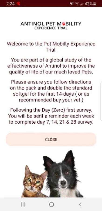 - The app helps pet owners and vets complete a simple, ongoing survey.