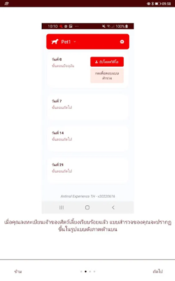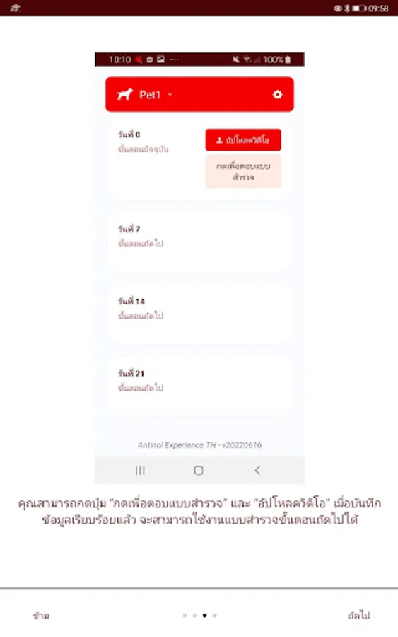 - Notification feature when it's time to upload a video and evaluate the pet's physical condition in the next round.